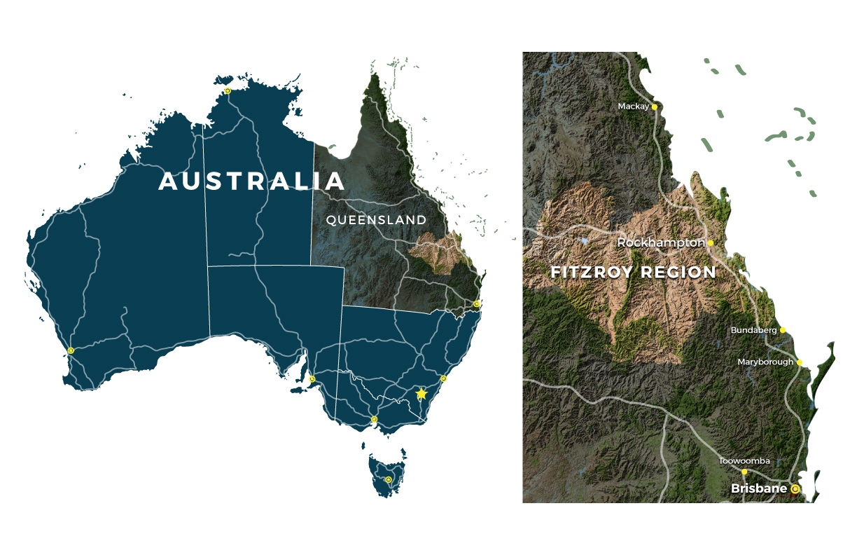 As one of the 12 regional program offices within the state-wide Transport Network Reconstruction Program (TNRP), the Fitzroy Region was one of the largest, covering an area approximately twice the size of Tasmania, Australia’s island state. At the peak of construction, Fitzroy had more than 50 live work sites on major and secondary highways at one time. The program was implemented in two phases. The first phase recovery work was focused on reconnecting communities isolated by flood damage, where deliveries of food and supplies to area stores and communities were impossible by road, and essential local industries like beef production were severely impacted. Once the roads were repaired enough to reconnect communities, work then focused on the reconstruction of the flood damaged roads.