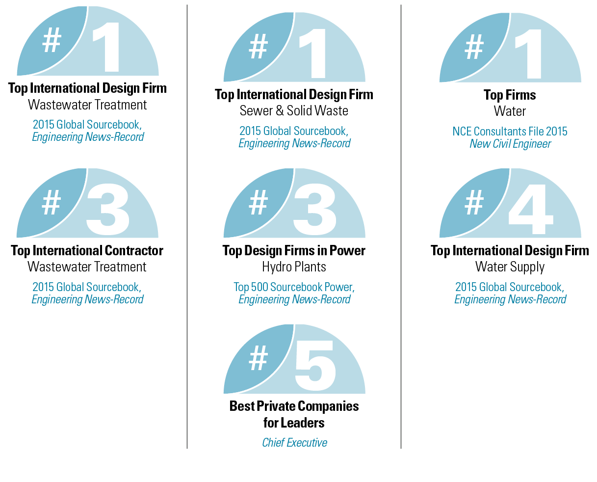We are proud of our achievements in 2015. We expanded the scope of our business through successful work on many key projects around the globe, among them the AMP6 projects in the U.K., the Miami-Dade Water and Sewer Department wastewater treatment plants in Florida and Willamette Water Supply Program in Portland, Oregon, to name a few. We were diligent in diversifying around water markets and delivering solutions geared to our clients’ needs, particularly in the industrial water treatment sector. We also have established a leading global role in potable water reuse that strategically positions us to respond to our changing global climate.