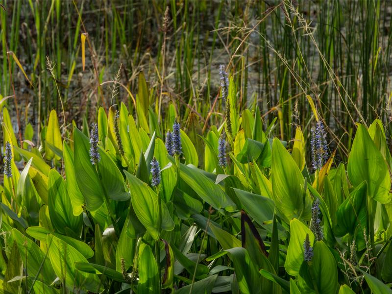 The wetland was also conceived to add biodiversity and encourage the return of native wildlife. Over 100,000 wetland plants stabilize the landscape, with trees and upland species placed along a bike path, visitor’s entry way and peninsula. The site now features habitat such as riparian woodland, shrub swamp, emergent marsh, wet meadow and open water. Animals recently sighted include alewife, swan, heron, mallard, bullfrog, snapping turtle, deer and muskrat. Visitors have access to a half-mile long boardwalk with panoramic views, a platform overlooking a man-made oxbow at the Little River, and an amphitheater with educational signage.