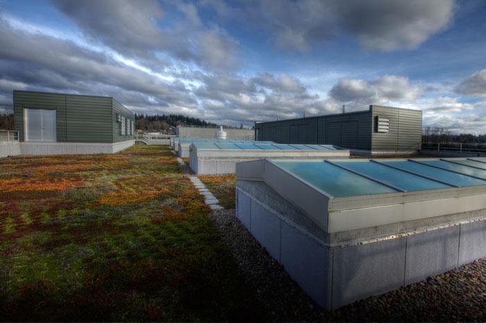 The design of the Tri-City WPCP also serves as a model for storm water management and sustainable development practices in the Pacific Northwest. The site treats 100% of the surface water onsite – nothing goes into the river. Other sustainable features include membrane treatment for high-quality effluent, facilities for treating and pumping reuse water and heat recovery for in-plant heating, as well as natural systems such as water-permeable roads, sustainable landscaping and green roofs.