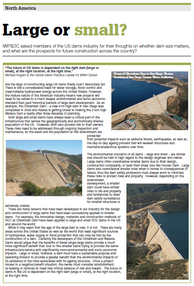In a recent edition of International Water Power & Dam Construction, Mike Rogers, MWH Global Dams Practice Leader, tackles the question, “Whether dam size matters and what are the prospects for future construction across the U.S.”