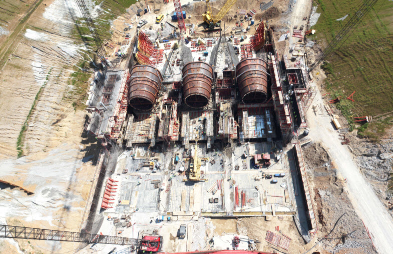 The powerhouses are designed to overtopped during flood events by as much as 25-ft of water