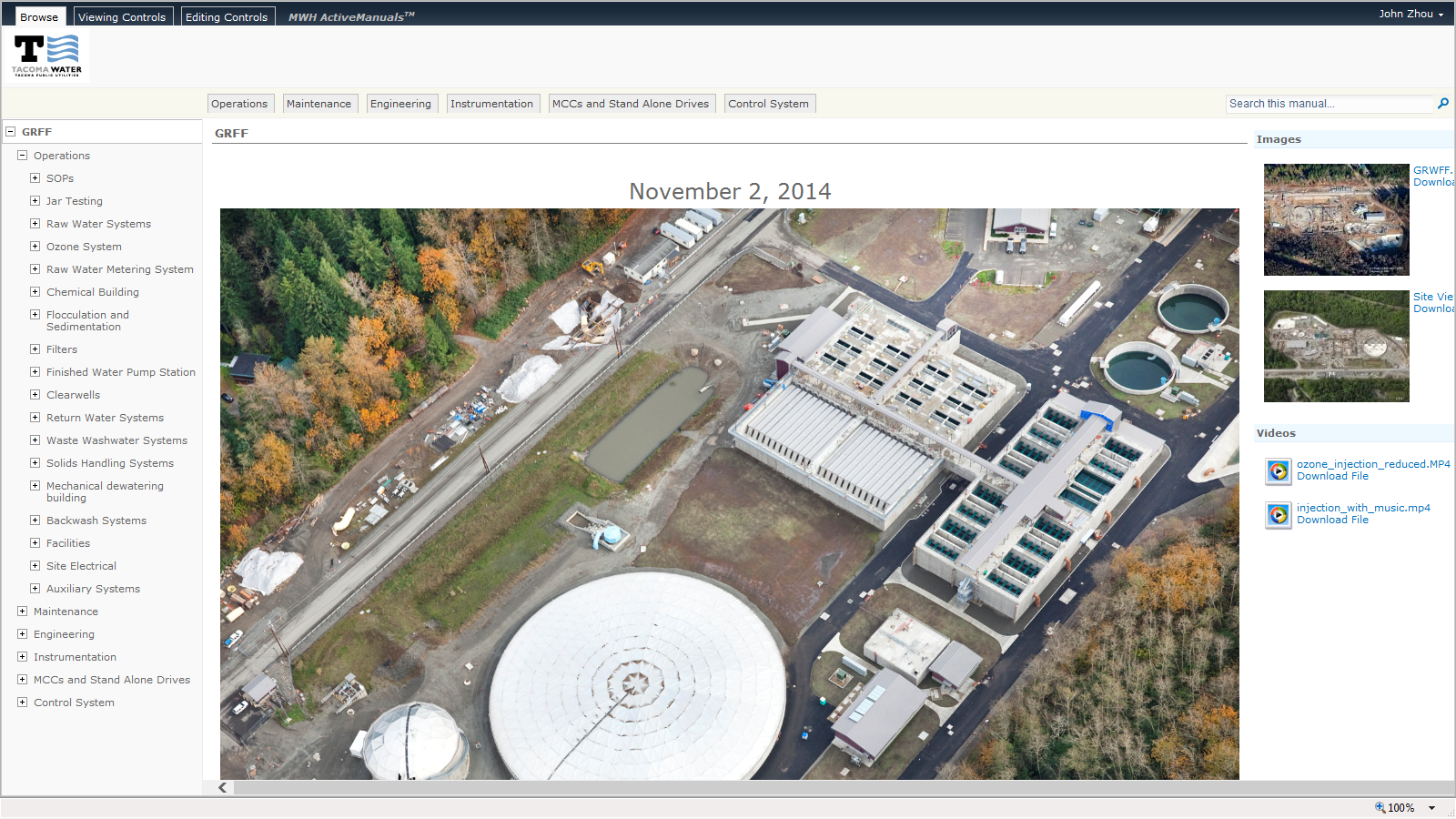 Tacoma Water in Washington uses ActiveManuals on a SharePoint platform to build the electronic O&M manuals for their new filtration plant at Green River. The entire O&M manuals was built by a Tacoma Water employee with little training on ActiveManuals over the construction stage of the facility. In less than one year, they built a dynamic site with 500 pages, 2000 associated documents and numerous cross links. Their site front page alone has 82 versions. It will be a daunting task if this is created by external parties other than the manual end users.