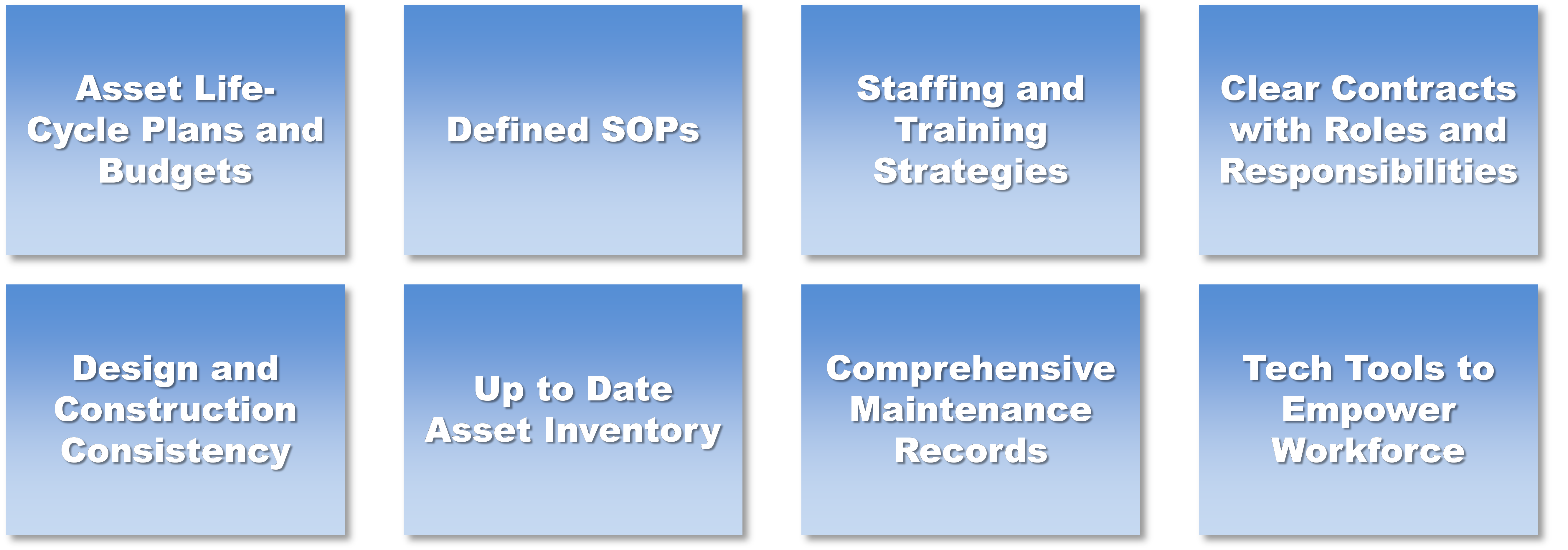- Ensure that long-term maintenance strategies are developed in parallel with design and construction so that utilities have a solid plan from the day assets are commissioned.